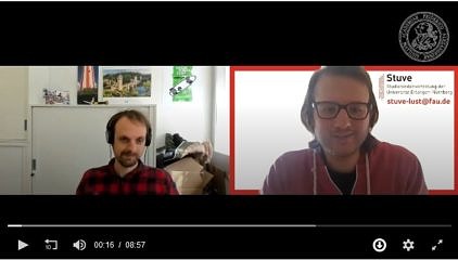 Das Referat Studium und Lehre der Studierendenverwaltung der FAU hat für die letzten zwei Semester unter COVID19-Randbedingugen Best-Practice-Umsetzungen von Lehrenden gesammelt. Dazu wurden die FAU-Studierenden aufgerufen, Dozierende vorzuschlagen, welche die Lehre am besten umgesetzt haben. Mit dem Ziel, andere Dozierende zum Nachahmen zu animieren, führte die Studierendenverwaltung Interviews im Rahmen „5 Minuten gute Lehre“ durch.