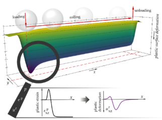 In einer Vielzahl von Maschinenelementen treten überrollte Kontakte auf, wie zum Beispiel in Wälzlagern. Kommt es dabei zu plastischer, also permanenter, Deformation der Kontaktpartner, treten am Beginn der Überrollung transiente Effekte auf. Im Rahmen einer Studie wurden die Zusammenhänge zwischen den kontinuumsmechanischen Größen der Kontaktpressung, plastischen Dehnungen und plastischen Deformationen anhand der Ergebnisse einer transienten Simulation mittels Semi-analytischer Methoden (SAM) untersucht. Dabei konnte ein Erklärungsansatz für die transienten Effekte abgeleitet werden, der über die kaum vorhandenen Erklärungen in der Literatur hinausgeht. Die Ergebnisse werden in unserer aktuellen Open-Access-Veröffentlichung präsentiert. https://doi.org/10.3390/lubricants10030047