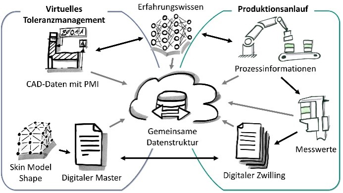 Bei Hochpräzisionsprodukten mit Toleranzen im Mikrometerbereich ist die richtige Toleranzallokation entscheidend. Klassische Methoden zur Toleranzfestlegung setzen stabile Prozesse voraus, die im Anlauf nicht gegeben sind. Entwickelt wird daher eine Methode zur dynamischen Toleranzallokation, die aktuelle Fertigungsdaten samt Unsicherheiten über digitale Zwillinge kontinuierlich einbindet. Der Ansatz ermöglicht eine adaptive Anpassung von Toleranzen im Anlauf und verbessert so gezielt die Qualität und Prozesssicherheit.